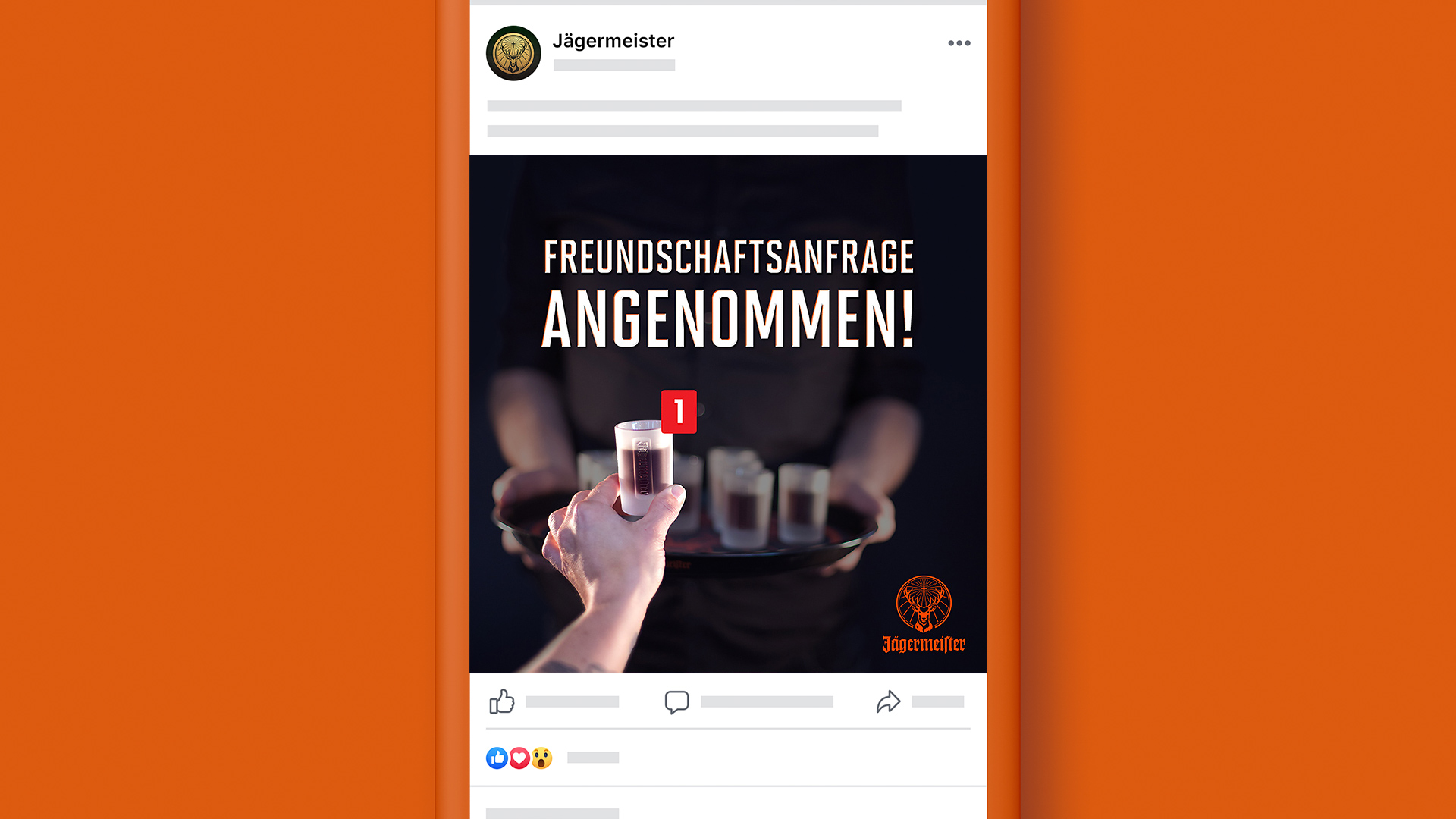 For Jägermeister’s german Facebook and Instagram channels, daily posts were created that focused on the brand’s values friendship, community, party and of course the iconographic product. Always with a pinch of humor. Cheers!